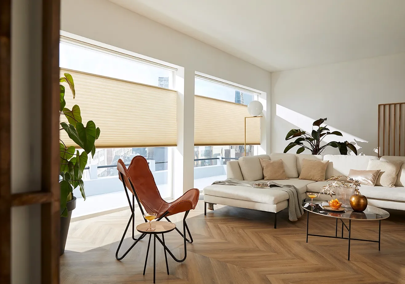 De juiste materialen maken een ruimte warm en uitnodigend. Een pvc-vloer die eruitziet als hout, maar eenvoudig te onderhouden is. Of Duette® Shades die niet alleen licht reguleren, maar ook energie besparen. Zo ontstaat een interieur waarin schoonheid en functie elkaar versterken. De materialen die je kiest, vertellen iets over je manier van leven: bewust, stijlvol en met aandacht voor kwaliteit.
