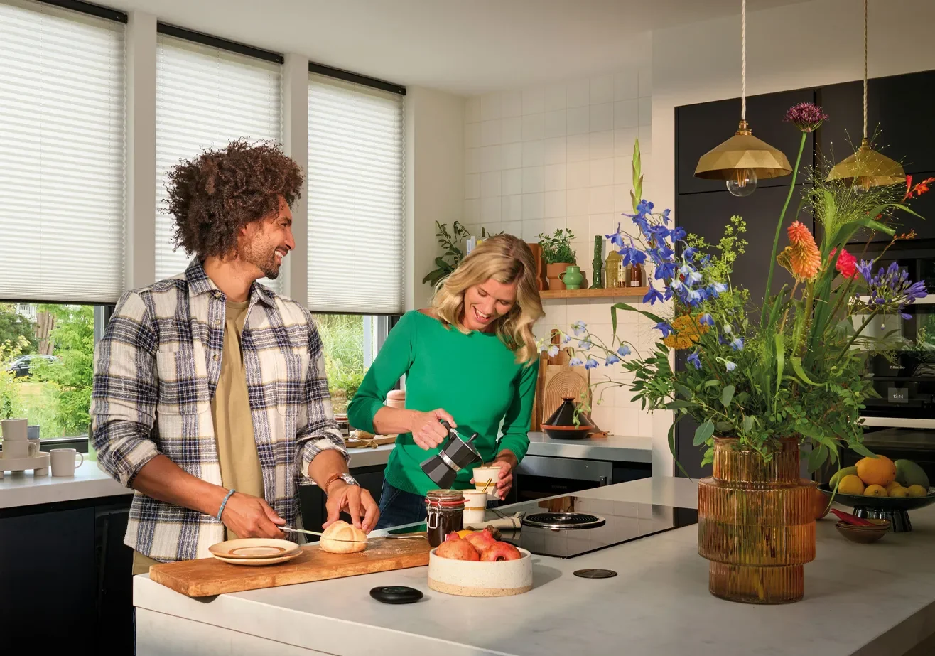 Met elektrische raamdecoratie hoef je nooit meer aan koorden of stangen te trekken. Of je nu in bed ligt, op de bank zit of aan het werk bent, je bedient je gordijnen of jaloezieën met één druk op de knop. Het gemak van elektrische bediening maakt het mogelijk om het licht in je ruimte in te stellen zonder dat je er fysiek bij hoeft te zijn. Sommige systemen kun je zelfs met je smartphone of via spraakbesturing regelen – zo haal je het nieuwste op het gebied van technologie in huis!