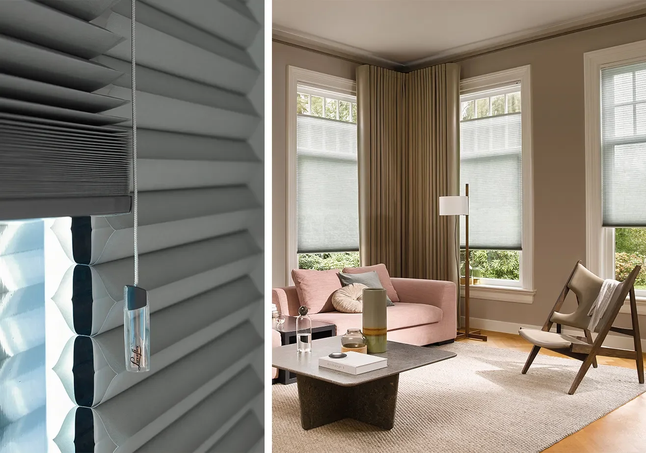 - Luxaflex Duette® Shades hebben een unieke honingraatstructuur die lucht insluit, waardoor je ramen een isolerende laag krijgen. Dit kan de warmte binnenhouden en de kou buiten.